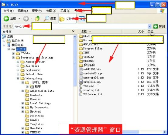 3、“资源管理器”的窗口组成。在框框里填上相应的名称。